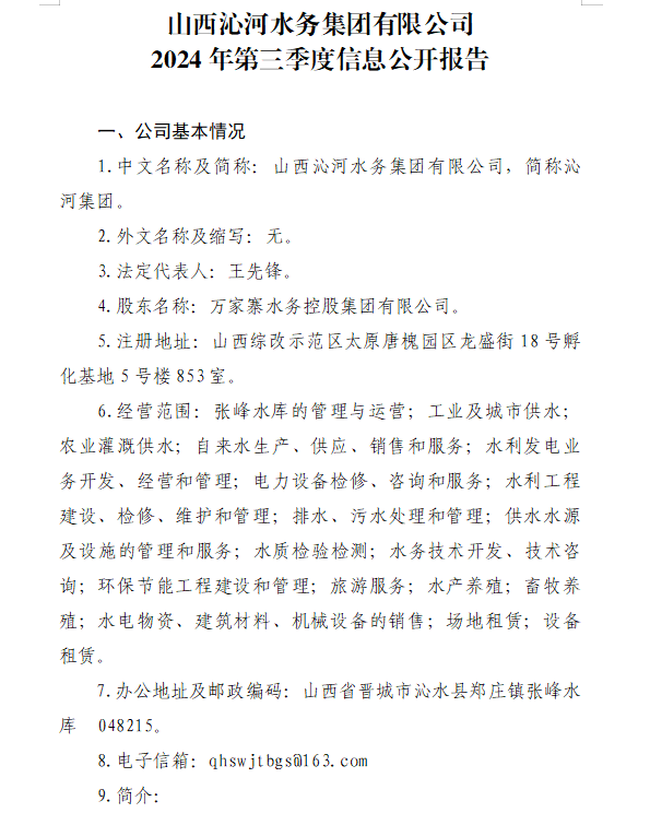 山西太忻滹沱河供水有限公司2024年中期重大信息公...