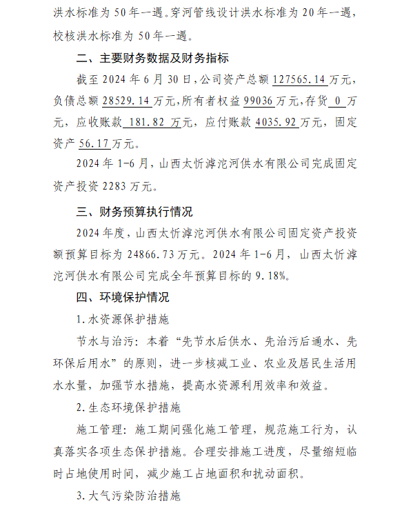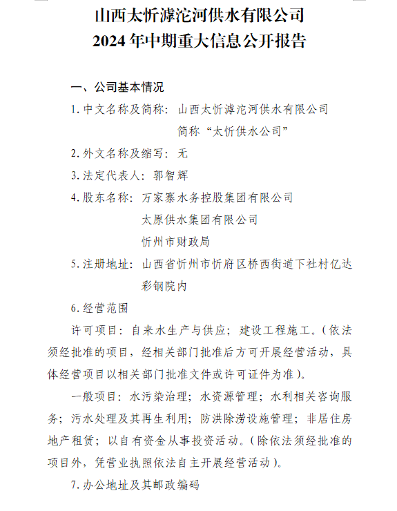 山西沁河水务集团有限公司2024年第三季度信息公开...