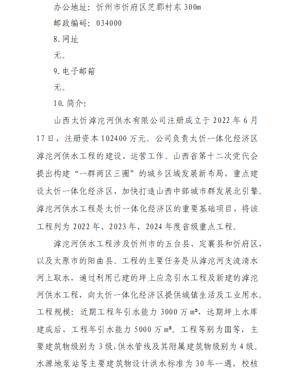 山西太忻滹沱河供水有限公司