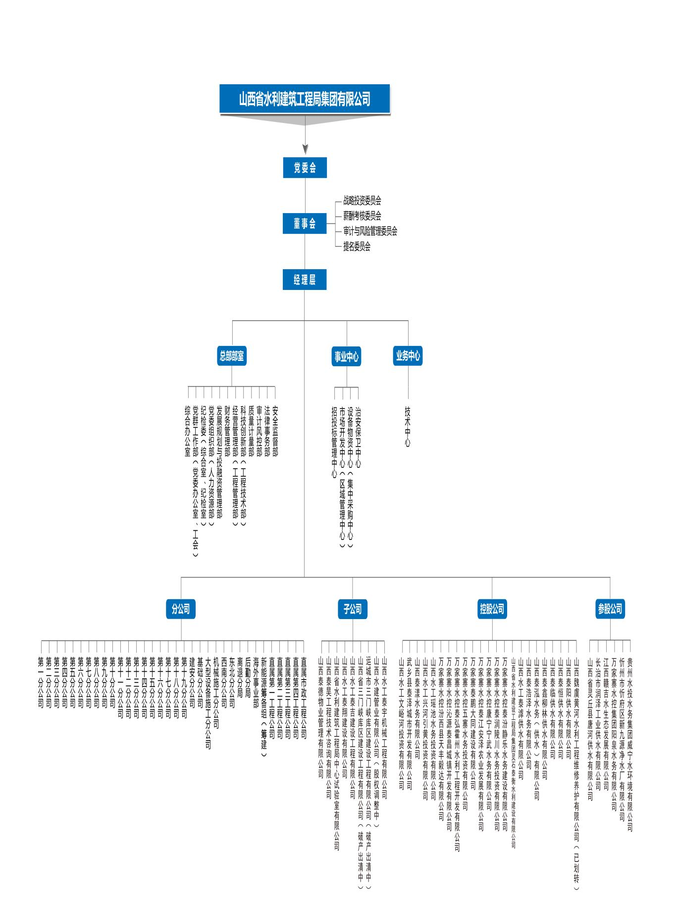 山西省水利建筑工程局集团有限公司(以下简称“山西水工集团”)成立于1960年,是万家寨水务控股集团有限公司全资子公司,具有水利水电工程施工总承包特级资质,集“投资、开发、建设、运营、科研”为一体的国有大型综合施工企业。