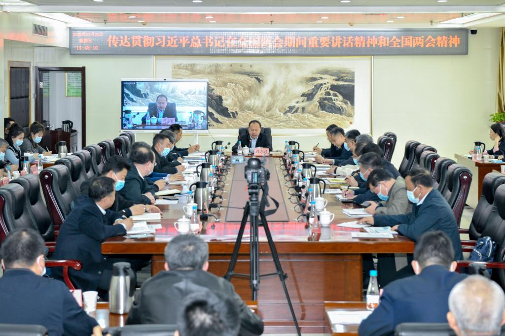 冯志君指出,习近平总书记在两会期间发表的一系列重要讲话,为我们奋进新征程、夺取新胜利,做好相关工作指明了方向,提供了遵循。习近平总书记强调,“各级党委和领导干部要自觉讲政治,对“国之大者”一定要心中有数,要时刻关注党中央在关心什么、强调什么,深刻领会什么是党和国家最重要的利益、什么是最需要坚定维护的立场”。在全国两会期间,习近平总书记还提出了两个重要论断,即5个“必由之路”和5个“战略性的有利条件”,各级党组织要深刻领会,把学习好、贯彻好、落实好习近平总书记重要讲话精神和全国两会精神作为重要政治任务,与学习贯彻习近平总书记考察调研山西重要指示精神结合起来,与持续巩固党史学习教育成果结合起来,领会精神实质、把握核心要义、坚定前进方向,在深学细悟上下真功,在知行合一上见真章。要将政府工作报告中关于水利发展和国企改革的要求融入全年工作,切实把学习成果转化为履职尽责的具体成效。要立足山西省情水情,聚焦主责主业,强化责任担当,发挥作用优势,上下协同、凝聚合力,为全方位推动山西高质量发展提供坚强水支撑水保障,在补齐水旱灾害防御体系短板、提高水资源?;だ盟健⑹凳┫绱逭裥苏铰?、改善生态环境等重要战场上展现水控担当。