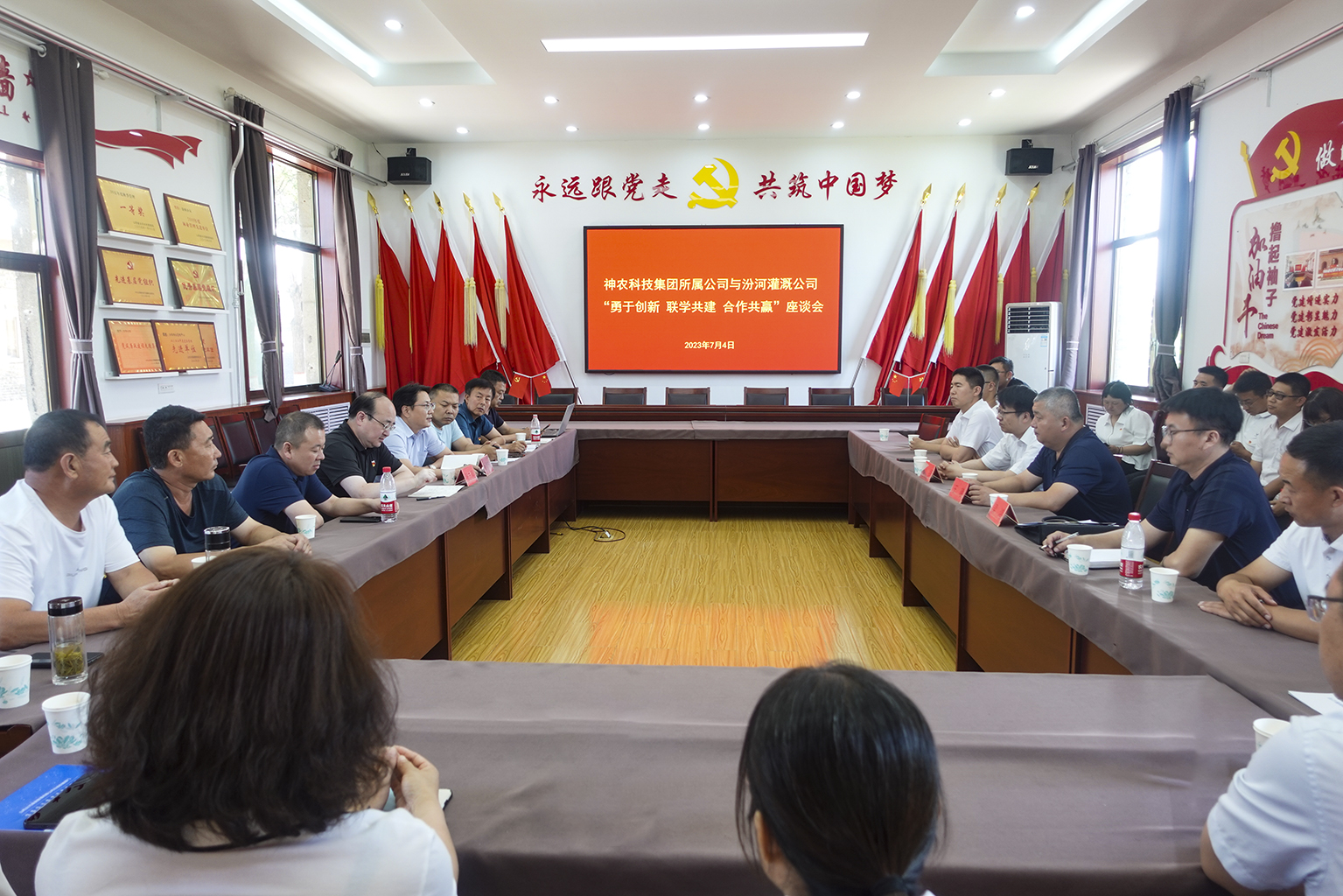 7月4日,山西汾河灌溉管理有限公司与神农科技集团所属神农农机集团、神农渔业公司、神农薯业公司联合开展“勇于创新、联学共建、合作共赢”主题党日活动,赴汾东供水管理中心东二支管理所、科研服务中心、汾西供水管理中心等地,现场观摩了汾河灌溉公司一体化闸门、测坑试验区、农业气象观测场、地下测坑和试验田,调研公司“一支部一品牌”创建,参观了东二支党小组学习阵地。