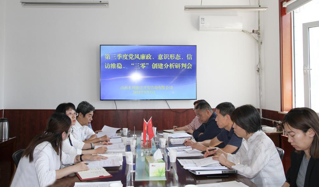 保安全、护稳定、促发展。为确保扎实做好做细做实迎接党的二十大胜利召开的各项安全维稳工作和传达中秋、国庆“廉洁过节”的相关要求,9月7日,万家寨水务控股集团专职党委副书记、副董事长范世平深入水建咨询公司,召集联系单位设计院公司、水电监理公司、水资所公司、水建咨询公司、文化公司、水工咨询公司、项目公司、水务监理公司负责人召开第三季度分析研判会。